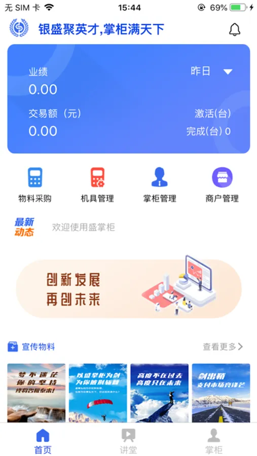 盛掌柜是您身边的展业助手, 主要有商户管理、机具管理、机具采购等功能