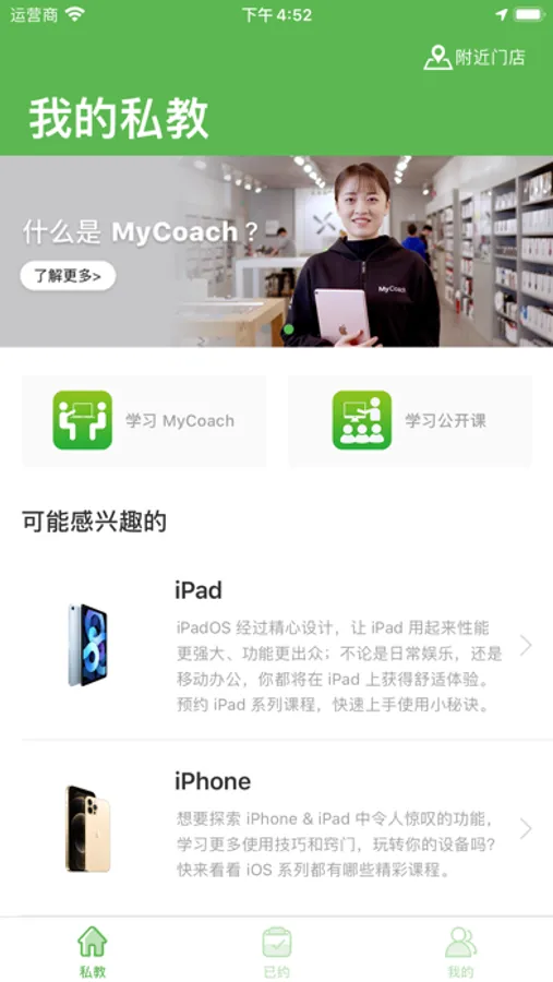现在你还可以通过 MyCoach app 随时查询附近门店以及门店中正在进行的精彩活动。不管是想要了解产品新功能,还是想要学习 如何发挥创意,提高生产力,你都可以找到对应的课程帮助你。