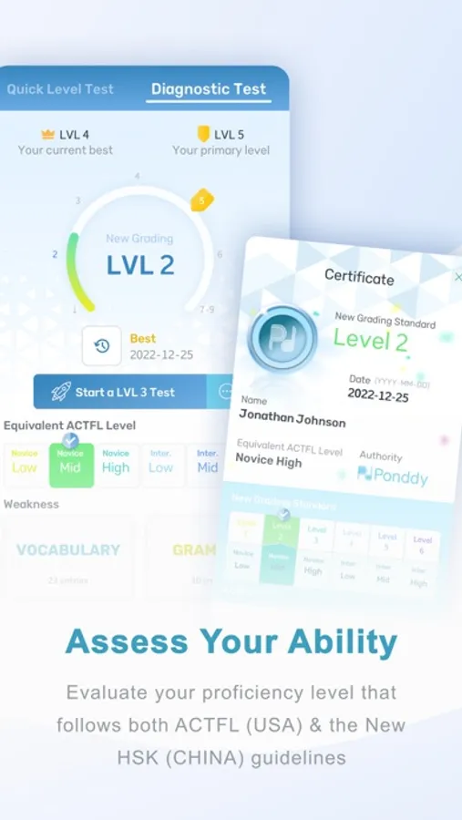 1. Built-in Auto Assessment that allows you to assess your ability against the ACTFL & HSK (New Grading Standard)