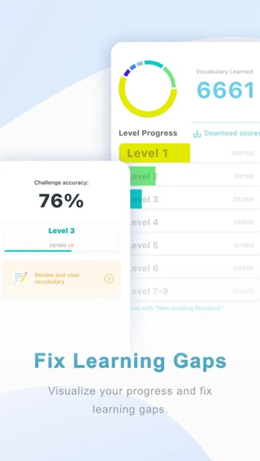 Save words you like to learn and the AI engine will create adapted exercises to help you master them. Your progress will automatically be captured by the standard-aligned reports.