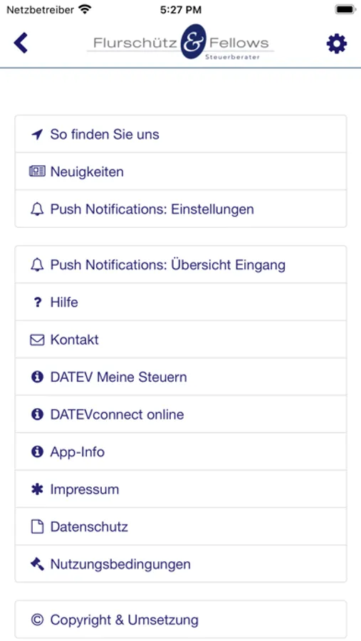 Mithilfe dieser App können Sie Belege, Dokumente und andere Schriftstücke schnell, sicher und komfortabel an Flurschütz & Fellows Steuerberatungsgesellschaft mbH gesendet werden. Machen Sie einfach ein oder mehrere Fotos von Ihren Belegen und versenden Sie diese mit einem Klick direkt aus der App heraus an uns - schnell und unkompliziert!