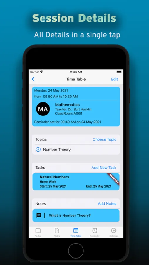 Day Journal helps sort your timetable and any class information in one space. All you have to do is add your classes and the app does the rest.
