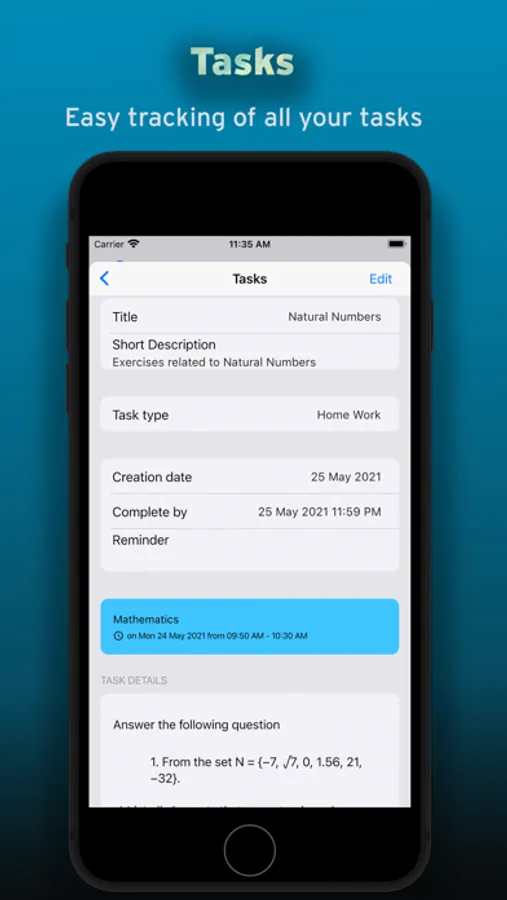 * ADD TASKS FOR EACH CLASS – Add homeworks, projects, exams so you know