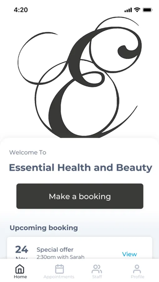 The Essential Health and Beauty app makes booking your appointments and managing your loyalty points even easier. You're just a few taps away from feeling good and looking great!