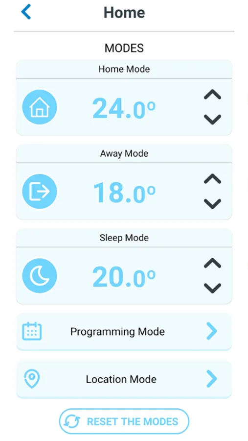 - You can choose one of the 6 different modes which suit your situation and control your home temperature. (Home Mode-Sleep Mode-Outside Mode-Program Mode-Location Mode-Manual Mode)