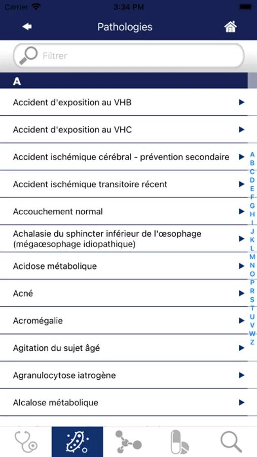 • Plus de 1 000 pathologies, classées en 18 spécialités (dont une nouvelle spécialité « Gériatrie ») avec les bonnes pratiques cliniques et les stratégies de prescription :