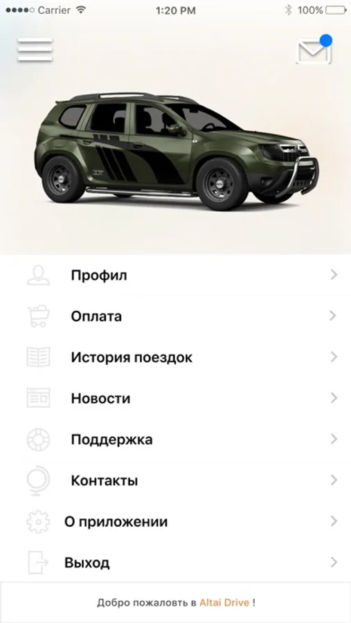 АЛТАЙДРАЙВ российская компания, запустившая сервис каршеринга с мая 2021 года. Сервис позволяет арендовать автомобиль через приложение на любое время: на короткую поездку и на продолжительную за город. Пользователю не нужно оплачивать бензин, автомойку, страховку и городской паркинг. Концепция «всё включено» покрывает эти расходы и пользователь платит только за время использования автомобиля. Задача компании АЛТАЙДРАЙВ — сделать полноценной и выгодной альтернативой личному автомобилю.