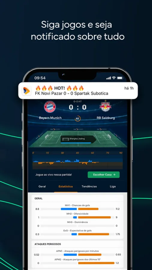 Alerta HOT, o inovador alerta da Playscores que te avisa quanto alguma equipe está na iminência de marcar um gol, mais poder para você prever os eventos antes de todo mundo.