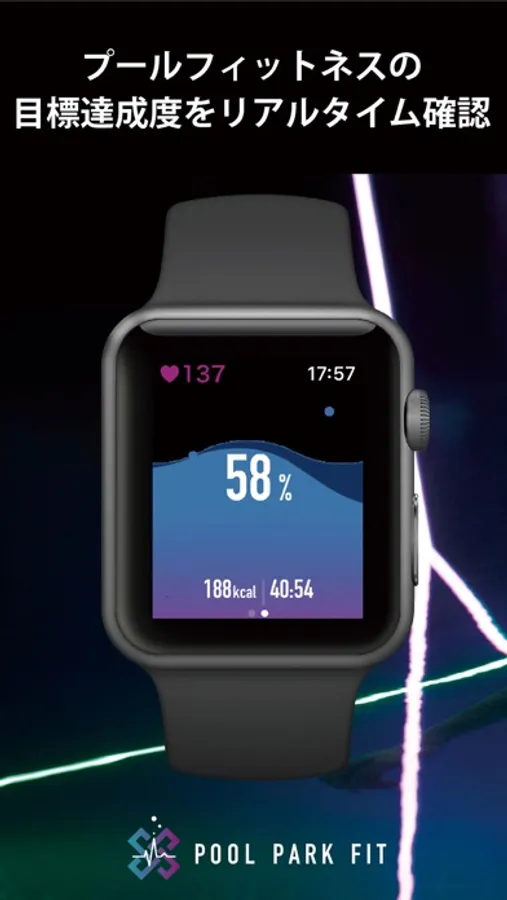 「POOL PARK FIT」は株式会社Rockin’Poolが開発した目標達成度を確認しながらプールフィットネスを楽しむことができるAppleWatch専用アプリです。