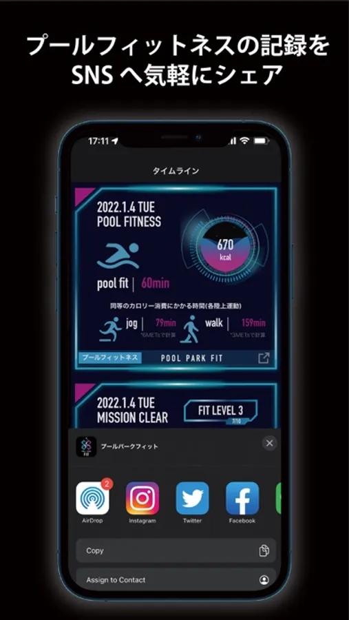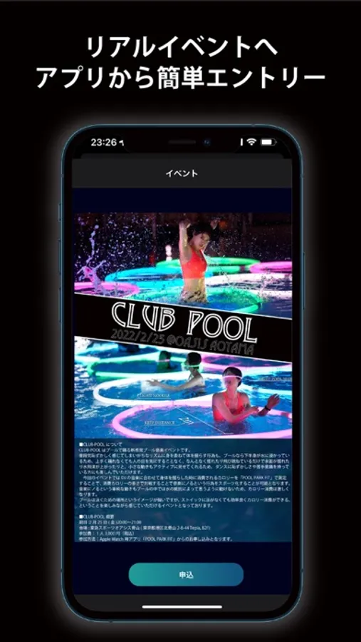 ※POOL PARK FITはAppleのヘルスケアアプリと連動しています。ワークアウトを同期して、運動のデータを記録します。