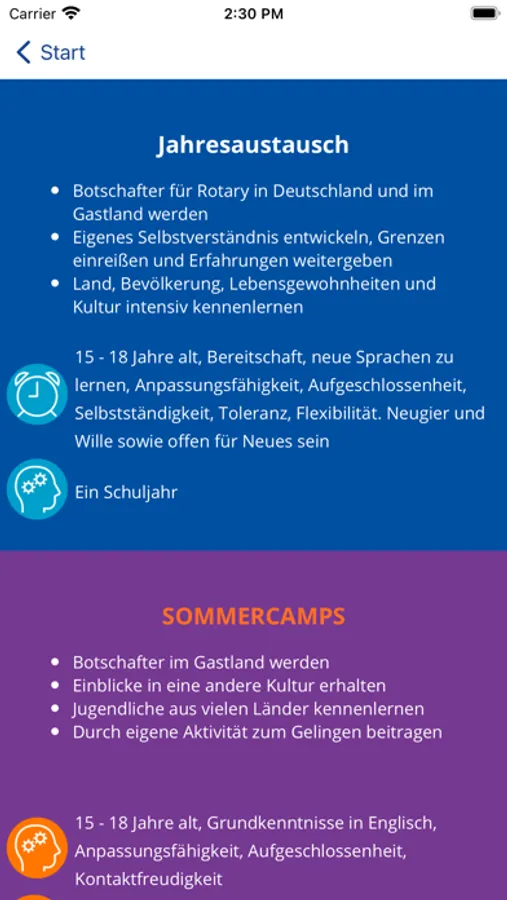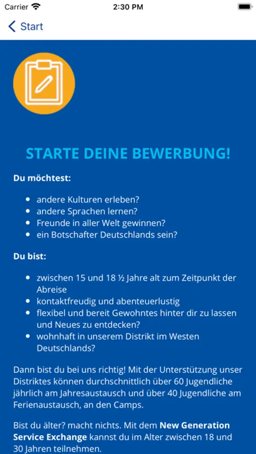 Der Rotary Jugenddienst bietet Dir diese Erfahrung und mit dieser App auch die Möglichkeit, Dich weiter über die Programme zu informieren und aktuelle Termine und Ankündigungen – auch per Push-Nachricht – schnell und unkompliziert auf Dein Handy zu bekommen. Neben direkten Anmeldungsmöglichkeiten zu Veranstaltungen gibt Dir die App auch die Möglichkeit, Dich mit anderen Interessierten auszutauschen und zu vernetzen.