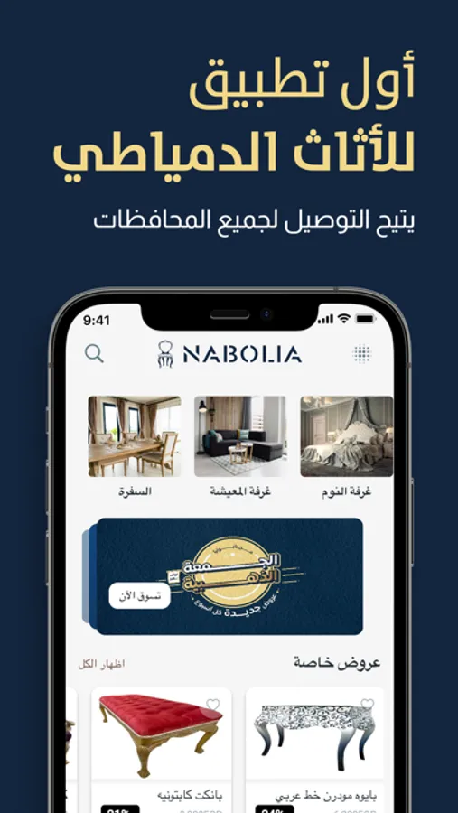 Nabolia App Provides you with all furniture and antique pieces From Damietta. All Products are handcrafted by a unique selection of Damietta craftsmen to offer the best quality and price for the Egyptian product.