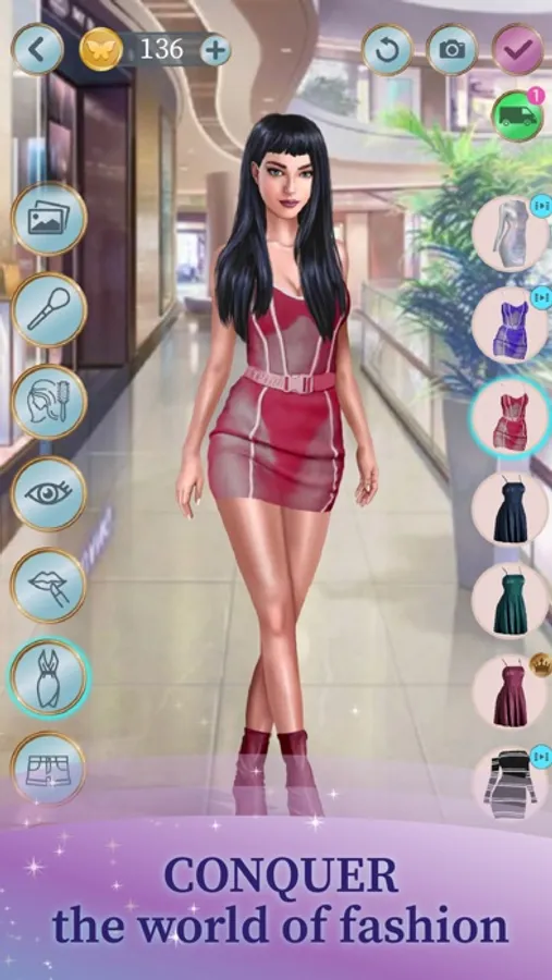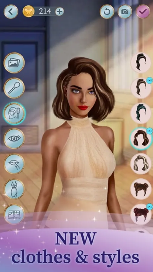 - Create new combinations and looks by changing the items: skin tone, hairstyles, makeup.