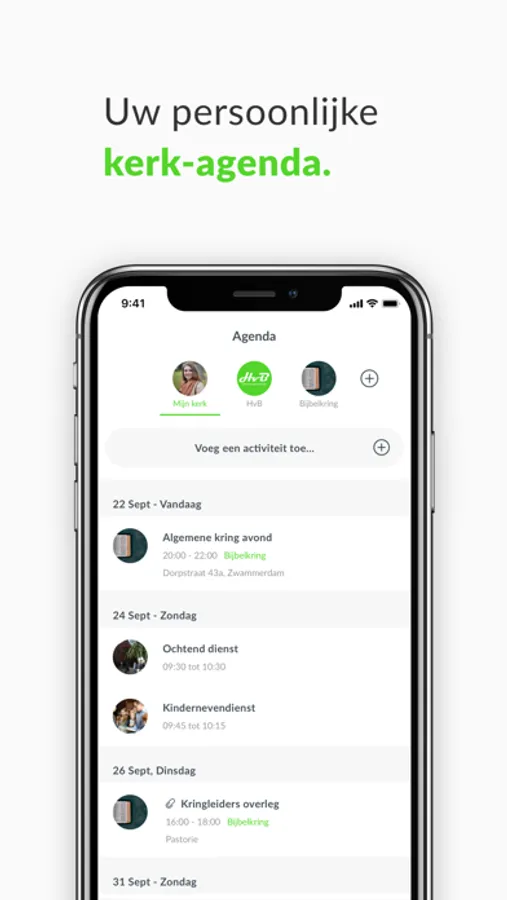 View the calendar for your entire community, but also for specific groups. Thanks to the smart group structure, each user has his own unique church calendar. Then link it to your own personal calendar and don't miss a thing!