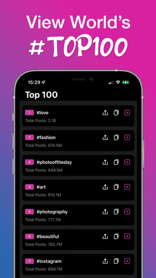 View and follow Instagram Top 100 hashtags used all over the world*.