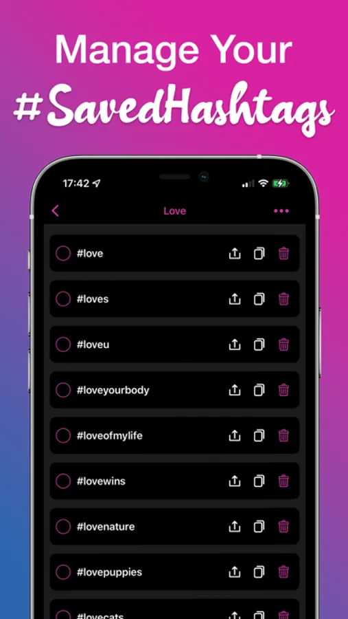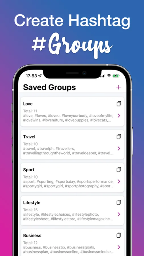 Create groups of your favourite hashtags, From the groups you have an easy access and management of your hashtags*.