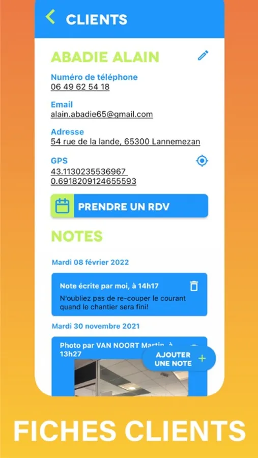 ● Gestion client : un outil de suivi optimisé. Créez vos fiches (coordonnées, relevé GPS automatique...), et complétez les avec des mémos vocaux, écrits ou encore des photos. Une fonction pour centraliser les informations.