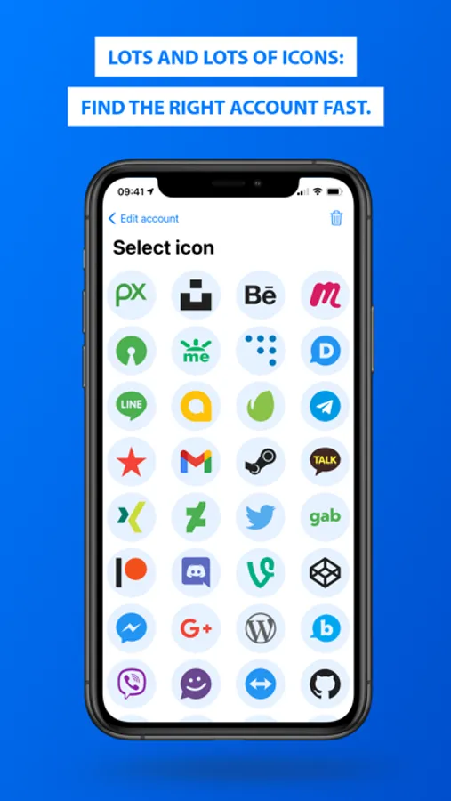 You can store different text fields and choose from a large selection of service icons to find your accounts faster. You can also mark frequently used accounts as favorites and of course sort your lists in different ways. This is how you can find the account you are looking for particularly quickly.
