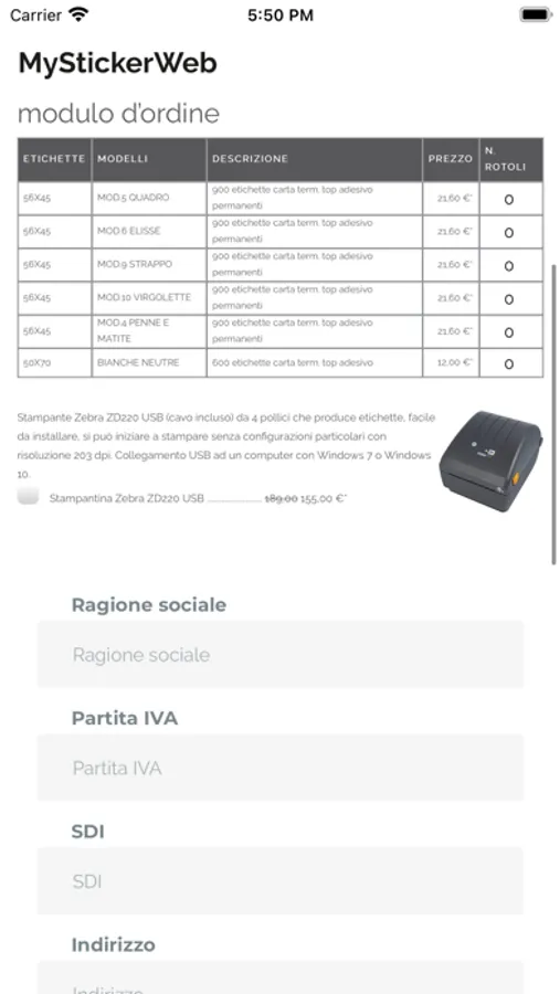 Non hai Lybro? Scarica l’APP MySticker e stampa le etichette direttamente dalla tua stampante Zebra. Puoi farlo anche da smartphone