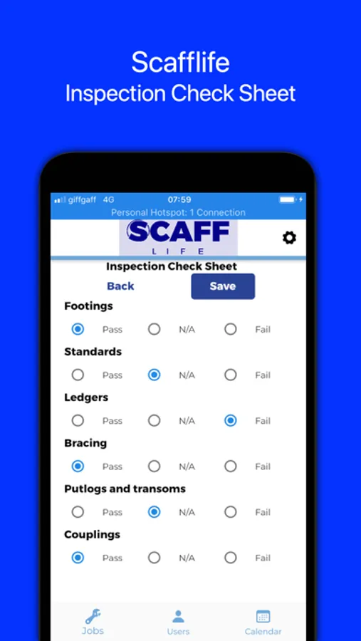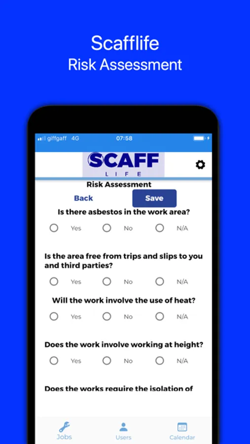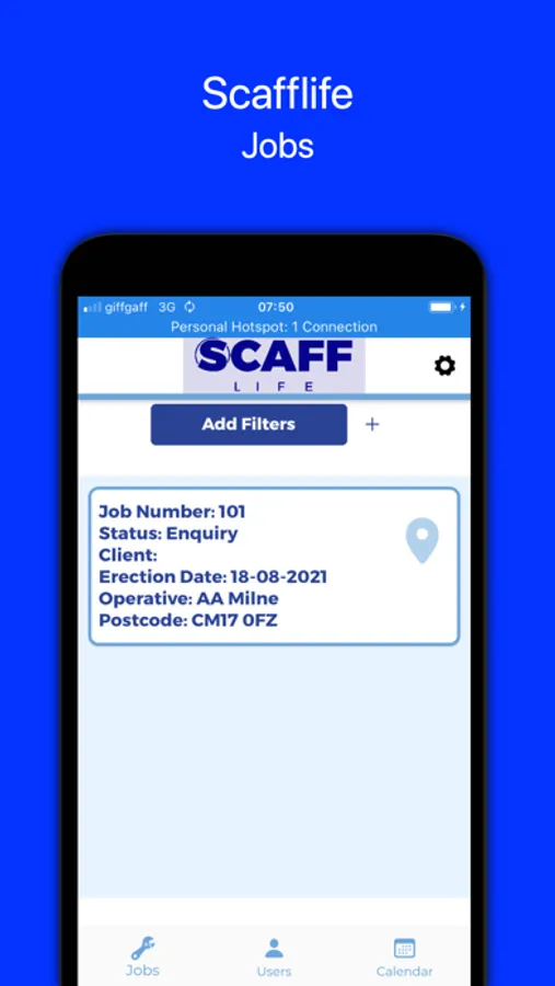 Scafflife is a job management app for the scaffolding industry. Users have different roles classified as Administrators, Planners, Scaffolders and Clients. Administrators and Planners can create jobs and enter all the details needed by Scaffolders to undertake the work. When a Scaffolder logs on to the app, they will be presented with a list of their assigned jobs. When a particular job is selected, the Scaffolder is presented with a map of the job’s location, the dates for erection, inspection and dismantling and all other necessary information. The Scaffolder can complete checklists and take photos of the completed works.