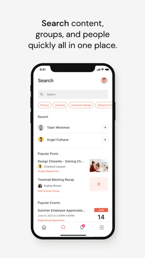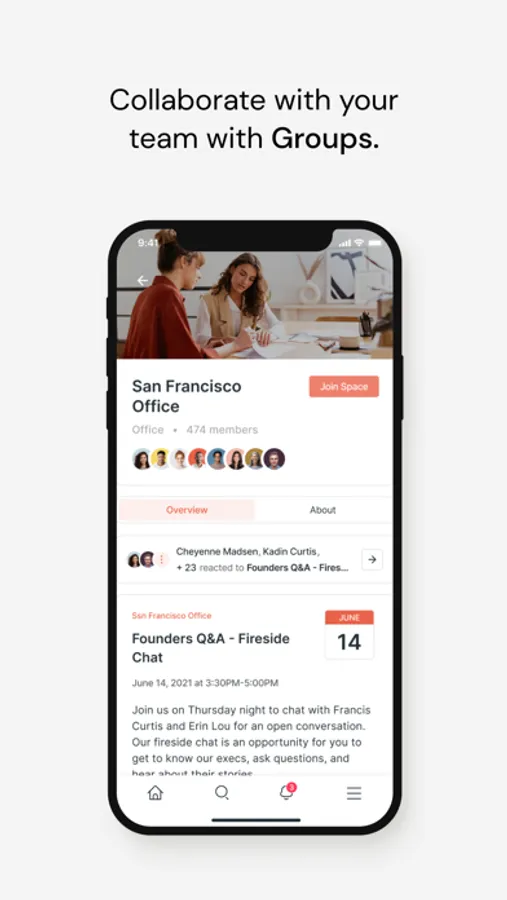 • Events - Create and view gatherings at any scale (virtual, in-person, or hybrid). Members can RSVP to events, manage their status, and add event details to their personal calendars.