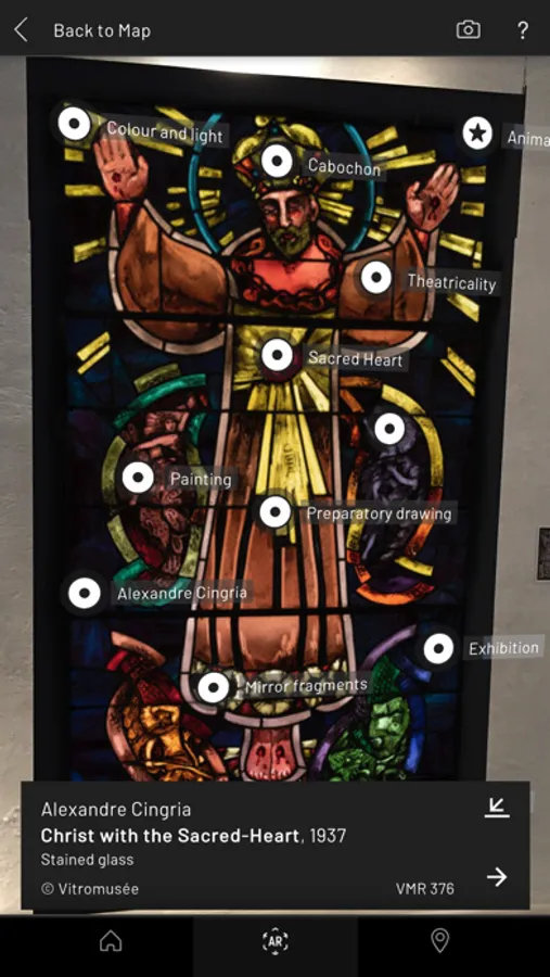 The Artifact App brings the stories behind artworks to life using augmented reality. It allows museum curators to enrich their exhibitions with digital content that is delivered via smartphones and tablets and is seamlessly blending into the physical surroundings of the displayed objects. In an interactive and playful way, the app complements the rich collections of glass art shown at the Vitromusée Romont with multimedia information such as images, audio, videos, animations and special effects.