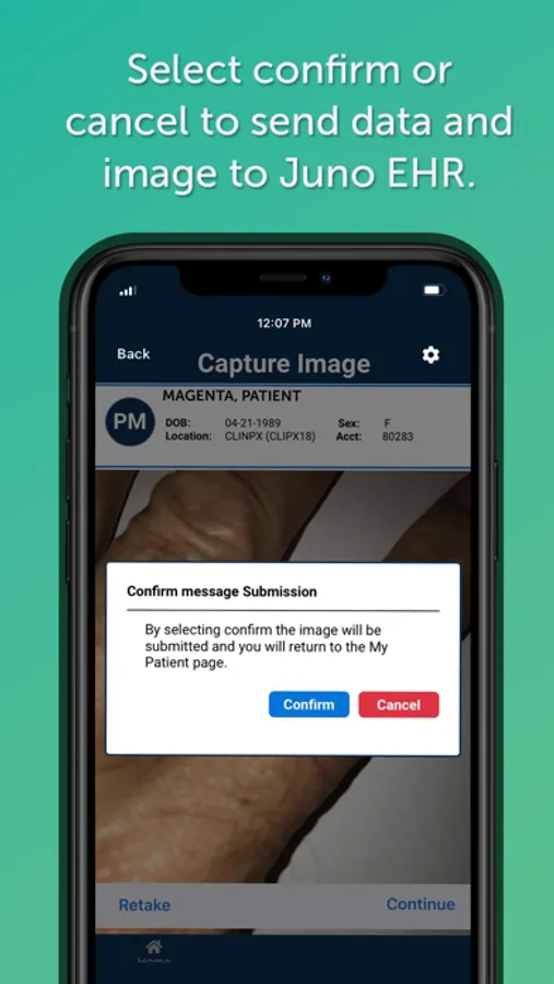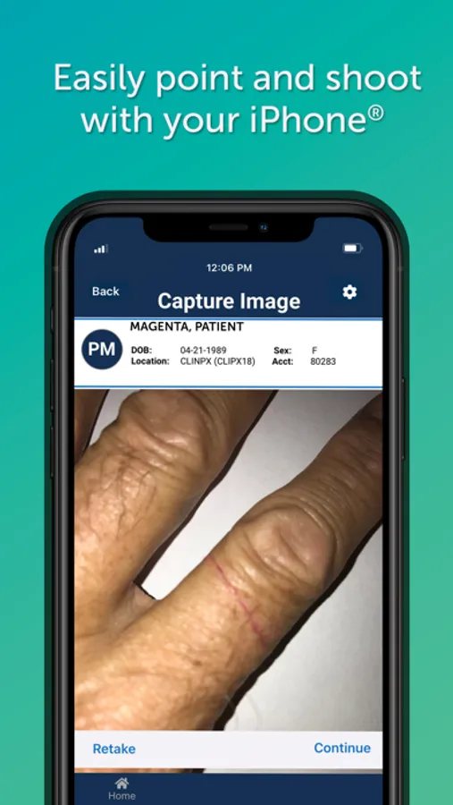 Clinical Pictures for iPhone® enables a provider to quickly locate their patient and snap a picture of the patient’s area of care. These photos are securely sent to Juno EHR for further documentation. Clinical Pictures provides the following functions: