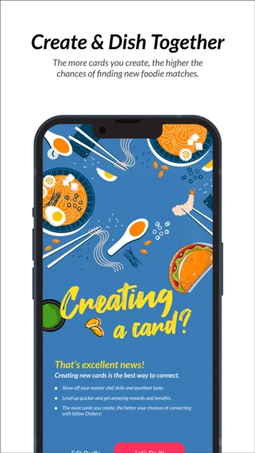 Enable your location to get matched with dozens of other foodies in your area. It's the perfect opportunity to meet new people and make new friends who appreciate food as much as you do. If you consider yourself a food enthusiast who is always looking forward to the next food adventure, this is the app for you!