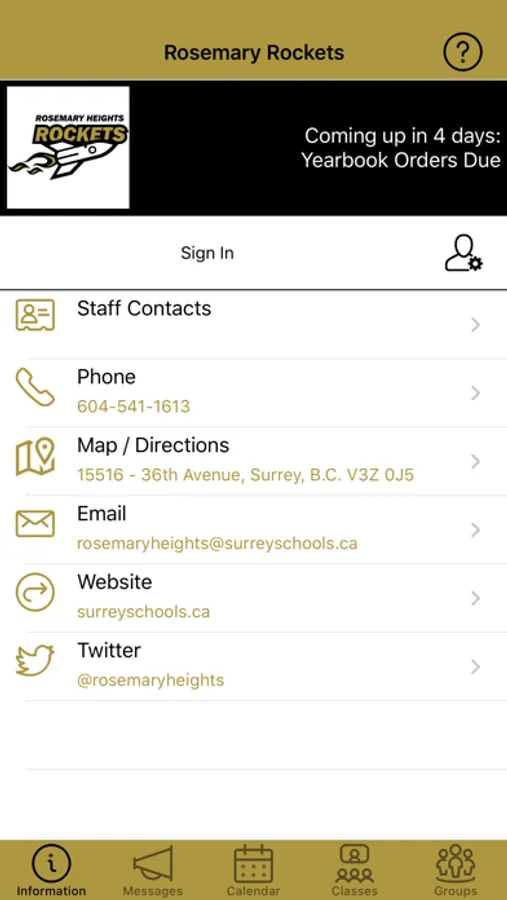 * Conveniently e-mail, phone, or navigate to the school, or reach the website or social media.