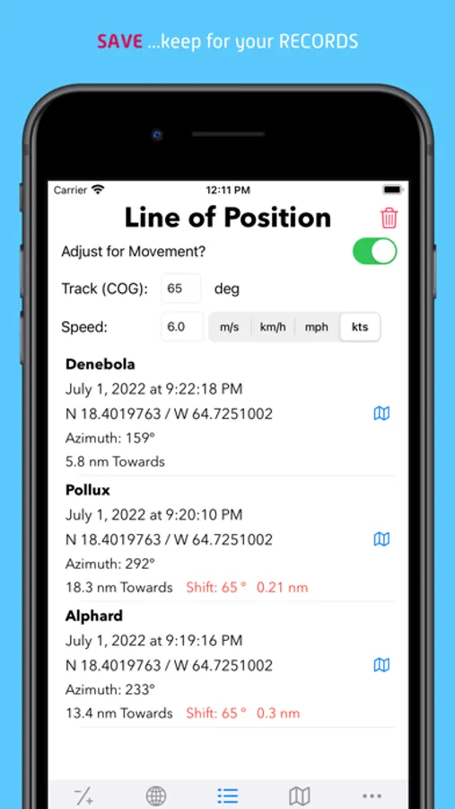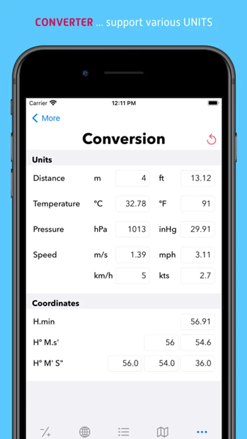 • Support for coordinate entries in different formats (H° M’ S” or Decimals)
