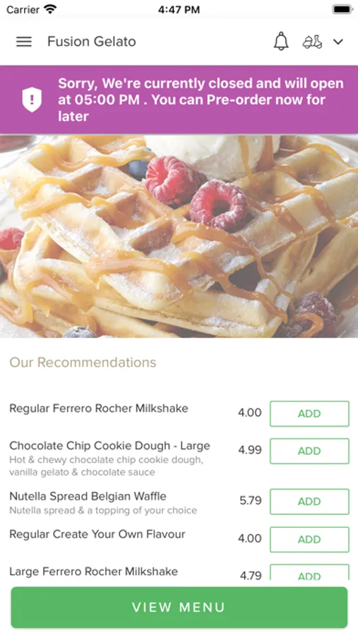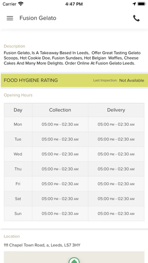 Order Food online from Fusion Gelato! It's so easy to use, fast and convenient. Try our new, online app which contains our entire takeaway menu.You can now order online, all your favourite dishes and many more delicious options, and have them delivered straight to your door in no time at all.Thank you for visiting Fusion Gelato in Leeds. We hope you enjoy our online ordering app and your food.Our Desserts are among the best in the UK - We offer delightfully tasty desserts, such as waffles, cookie dough, ice cream, milkshakes and more - something to satisfy every craving! Our experienced and skilled staff create our mouth-watering desserts with the freshest and finest ingredients, to ensure the highest standard possible is provided to all our customers. You can find our entire menu on our app, which is always up to date. Why not give an old favourite a go, or try something new!