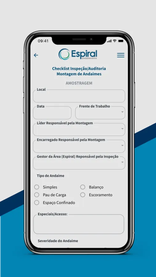 Com o aplicativo “Inspeções e Auditorias Técnicas de Montagem de Andaimes Espiral” você poderá registrar as inspeções realizadas nos andaimes da empresa em qualquer local e horário, de forma rápida, segura e simples.