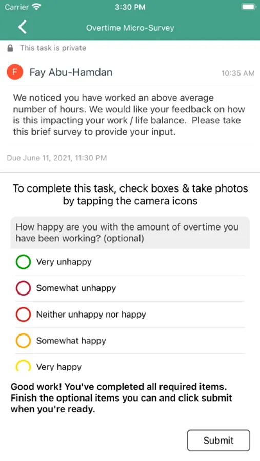 • Trigger actionable, personal, and timely surveys delivered to a specific employee, groups or Broadcast to everyone