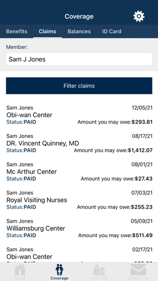 See your ten most recent claims. Get a detailed view of each one. Or look up specific medical, dental and pharmacy claims by member name.