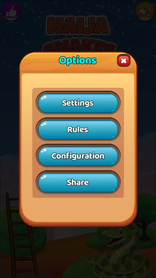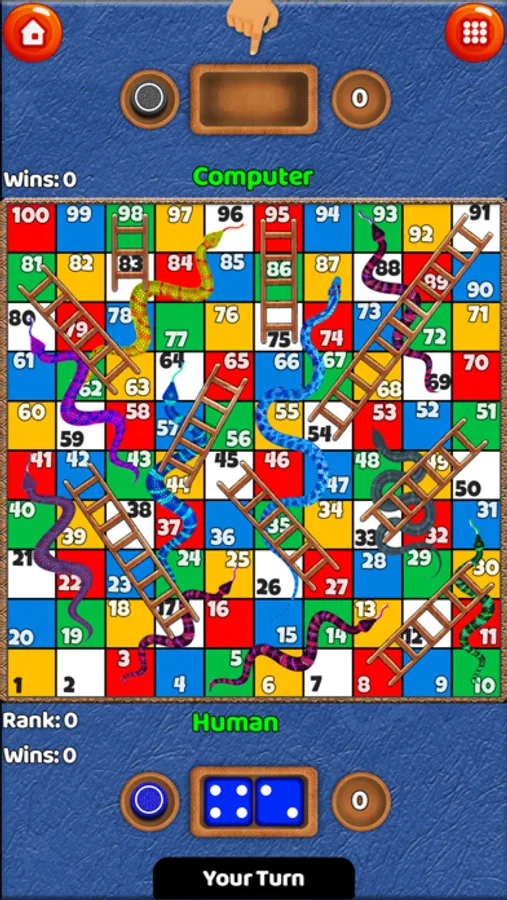 Naija Snakes and Ladders is very easy to play. Tap the dice at the middle of the board to roll the dice and tap on the round button below to move your piece. If your piece stops at the head of a Snake, it must be returned to the tail of the snake but if your piece stops at the bottom of a ladder it must move to the top of the ladder.
