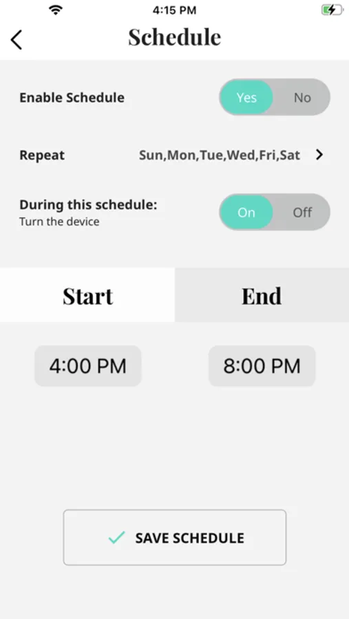 Schedule your lights and devices for automatic on/off control that functions when you are away from home
