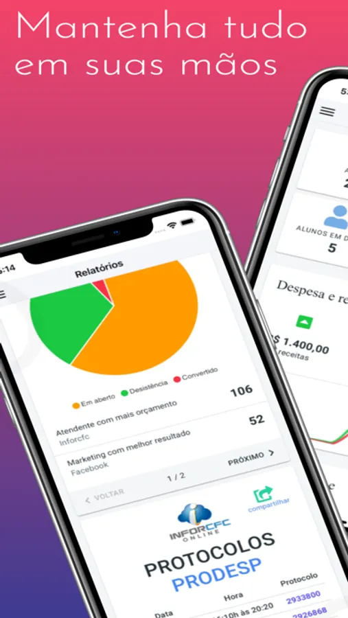 Gerencie seu CFC totalmente remoto, acompanhe suas despesas, receitas, dia de exame, novos alunos, etc...