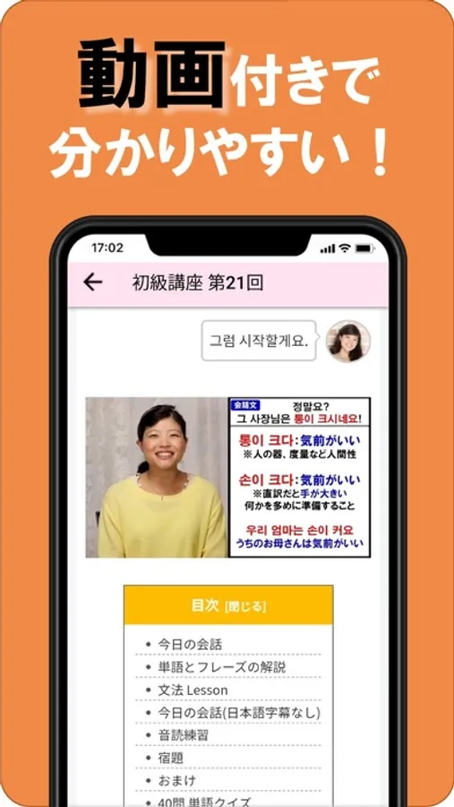 具体的には、韓国語の文字の読み方から始まり、初級であれば約1600個の単語と約80の文法表現の全てを、