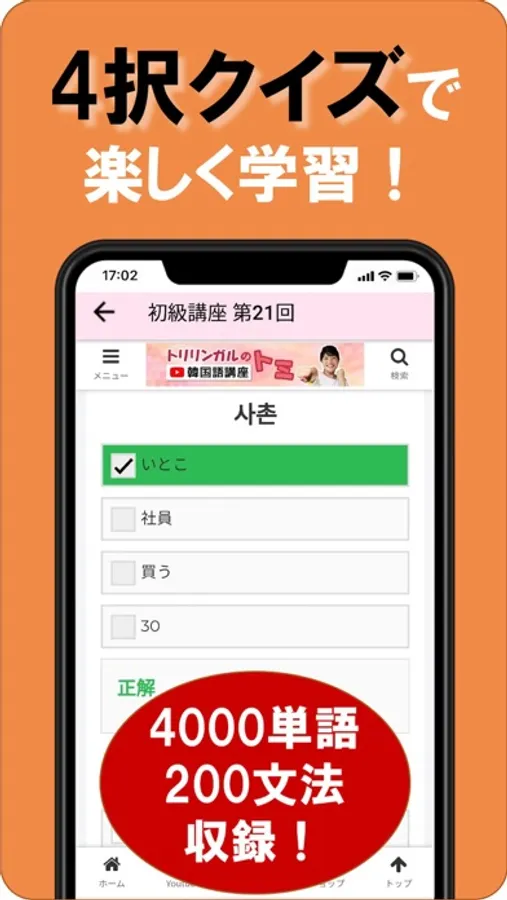 具体的には、「動画の台本の全文」「単語リスト・文法リスト・ハングル表のPDF」「全単語の4択クイズ」「中間テスト」「最終試験」などが準備されています。