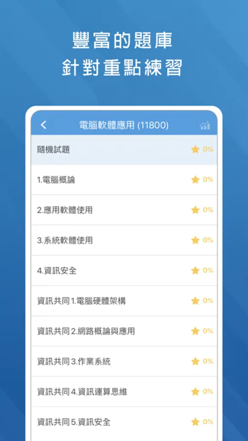 目前收錄了丙級、乙級、甲級、單一級的題庫。