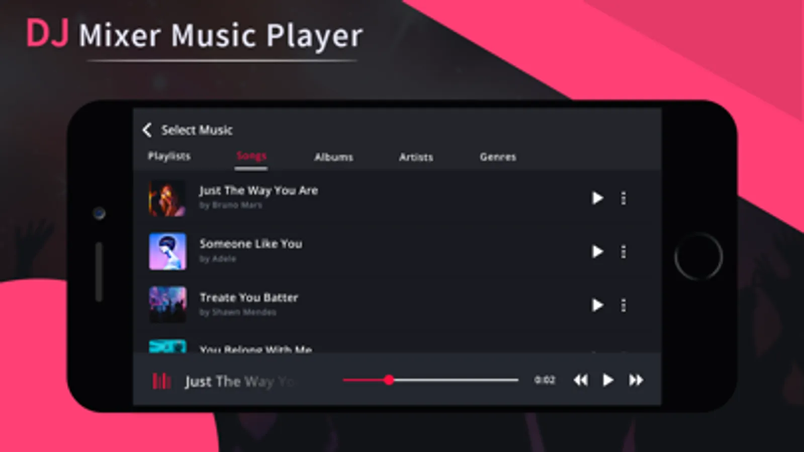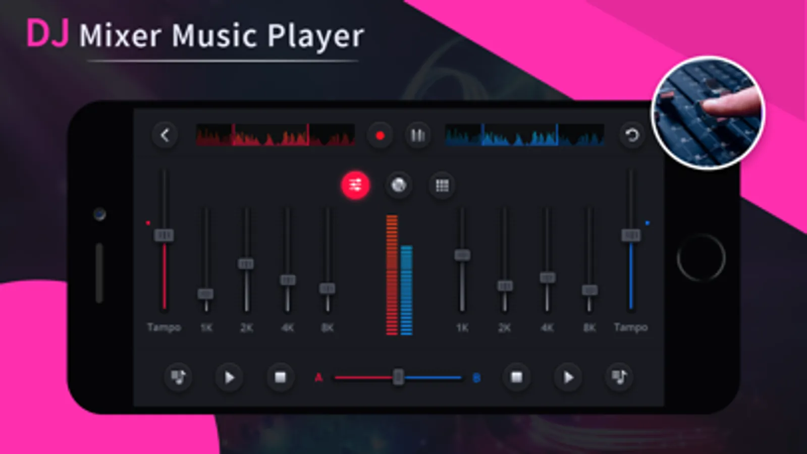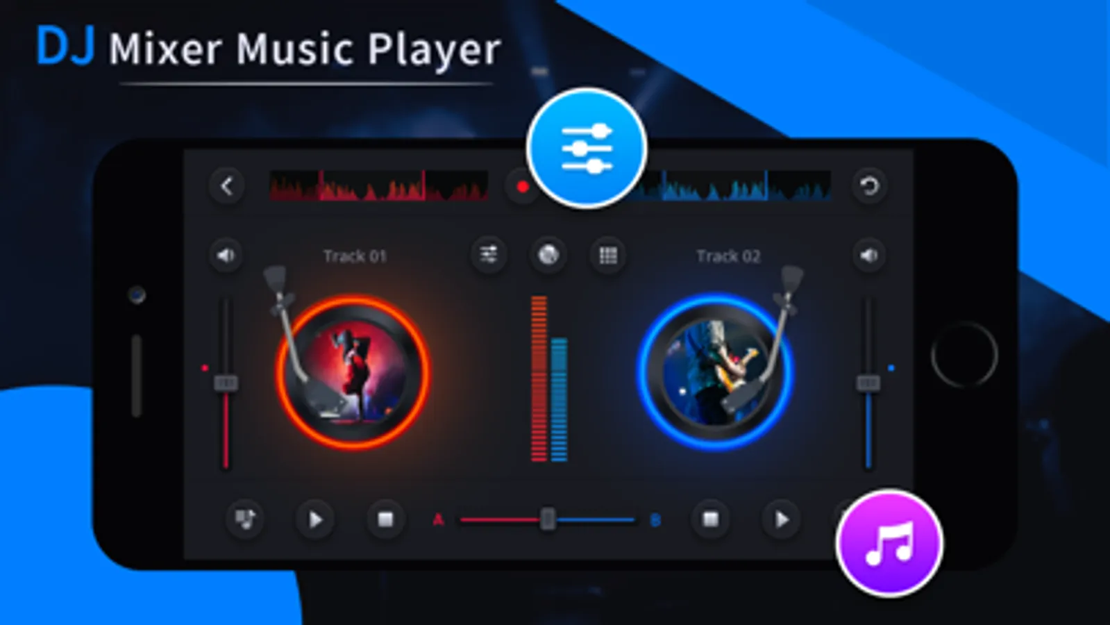 DJ Mixer Music Player is a music player with the looks and a lot of features of a real DJ. Its hard to get precise control over it as the screens are small but hope you will enjoy the mini DJ mixer app.