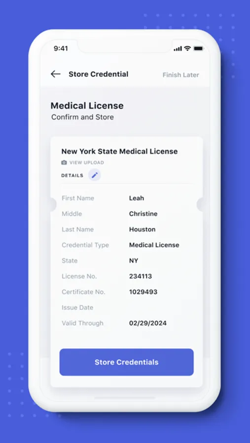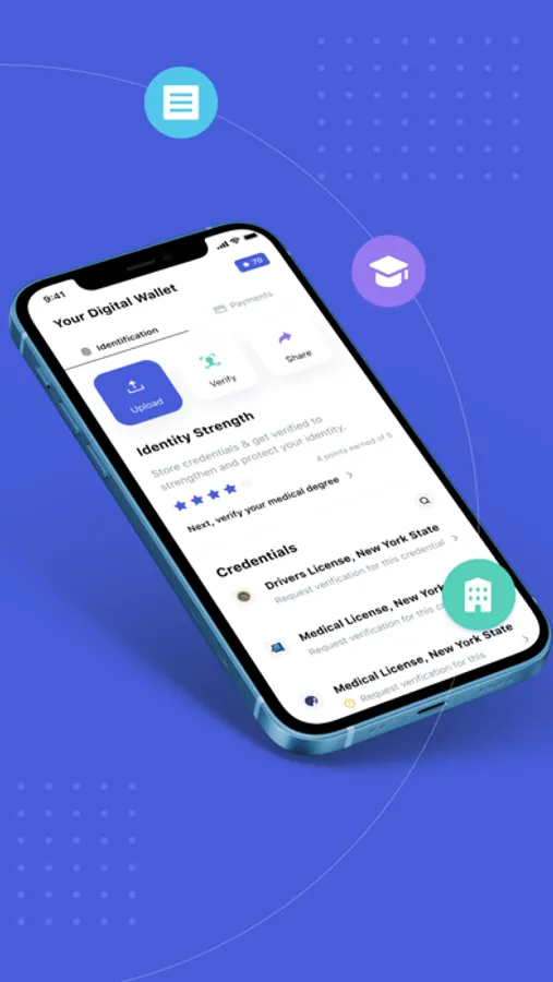 Our application consists of a self-sovereign identity system for each physician user, built in a secure and encrypted cloud agent that you control – your credential wallet. The digital wallet and credential verification portion of our application is built on open-sourced self-sovereign identity standards developed by the World Wide Web Consortium, (WC3,) and the Decentralized Identity Foundation (DIF.)