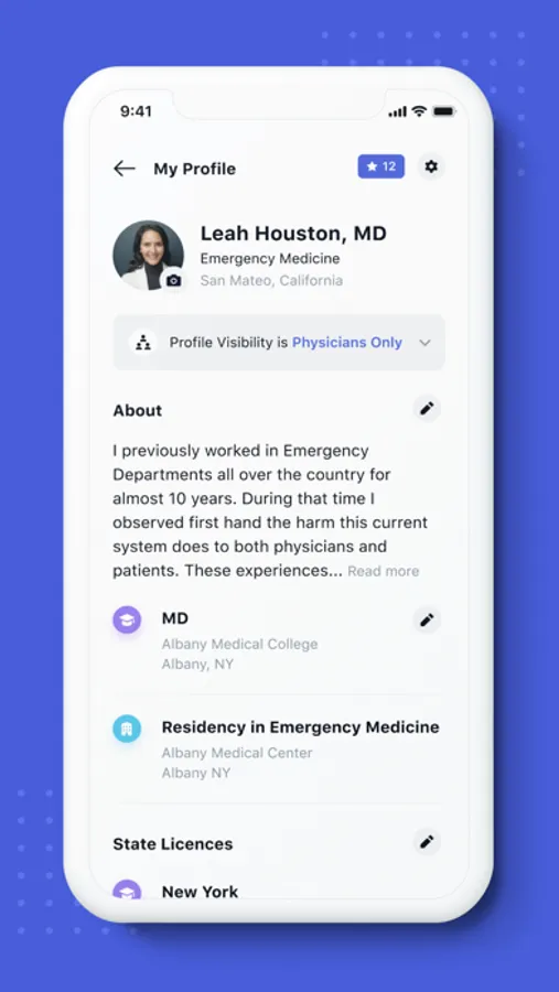 Physician centric control of their verified professional data gives the physician community the ability to verify who they are in a secure and trusted way so they can move freely throughout the healthcare system.