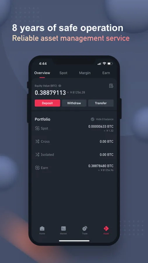 If you hold a local currency and want to get started in crypto, ZB Pro allows you to do just that! Head to the Deposit section of the app, and instantly purchase your crypto assets using Visa, Mastercard or Apple Pay. You are able to purchase stakes in hundreds of crypto types on the exchange, including Bitcoin, Ethereum, Shiba Inu, Polkadot, and the native ZB token.