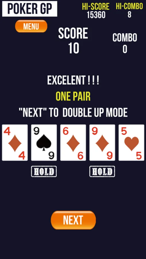 When all the poker hand is established, you will get a basic score, and you will enter the double-up mode!