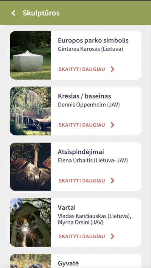 Europos parke atrasite stebinantį meną ir ypatingą gamtos ramybę. Prieš keletą dešimtmečių tai buvo tik jauno žmogaus idėja, vizija, šiandien ji tapo ypatinga meno erdve, kurioje pristatoma didžiulė pasaulinio meno kolekcija. „Europos parkas – tai vieta, kur susitinka viso pasaulio menas ir viso pasaulio žmonės“, – sakė garsi menininkė Magdalena Abakanovič. Leiskitės į įkvepiančią kelionę, tyrinėkite muziejų po atviru dangumi eidami paruoštais maršrutais arba savo nuožiūra, patirkite, atraskite, pažvelkite kitaip.