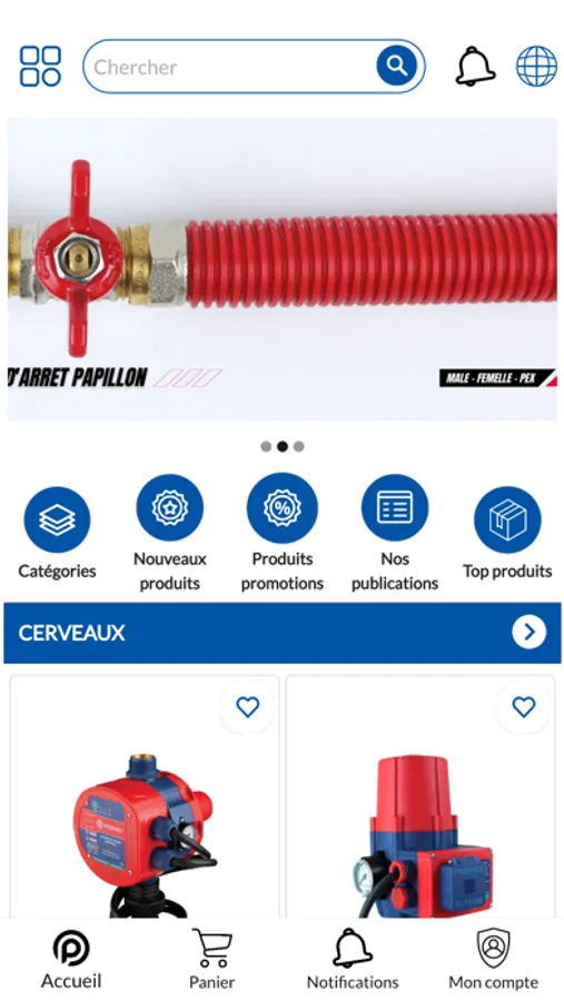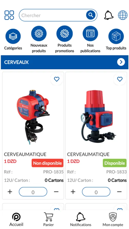 - affichage des produits dans différents catégories.