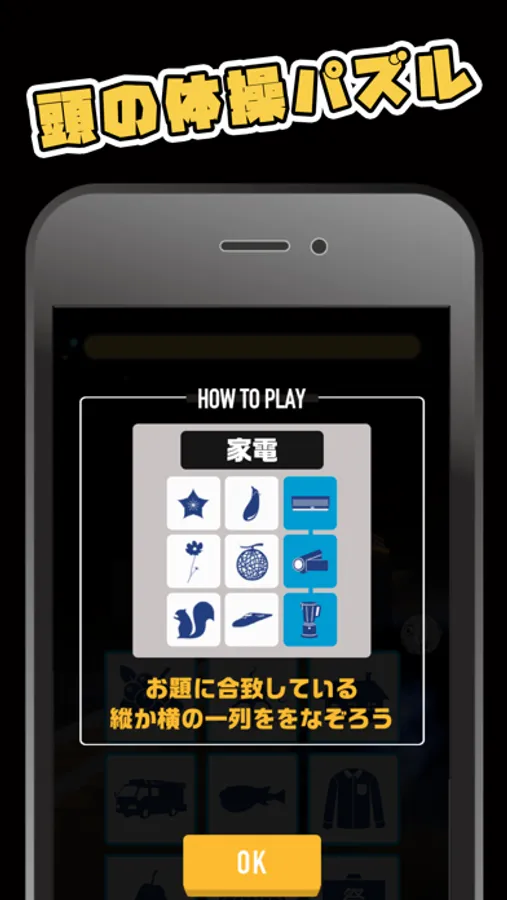 お題に合致している縦か横の一列を見つけてなぞる