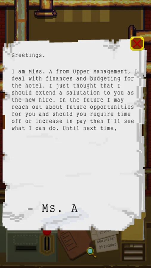 Play as one of the mailroom operators at the Hotel Hermes, a prestigious hotel in the swanky part of New Olympus. Your job is to ensure mail arrives at the right place at the right time and to accomplish this you have to master the archaic and eccentric system used by the hotel. In order to ensure mail reaches the right place, you will have to learn about the guests of the hotel, the upper management, fellow mail clerks, as well as the world at large.