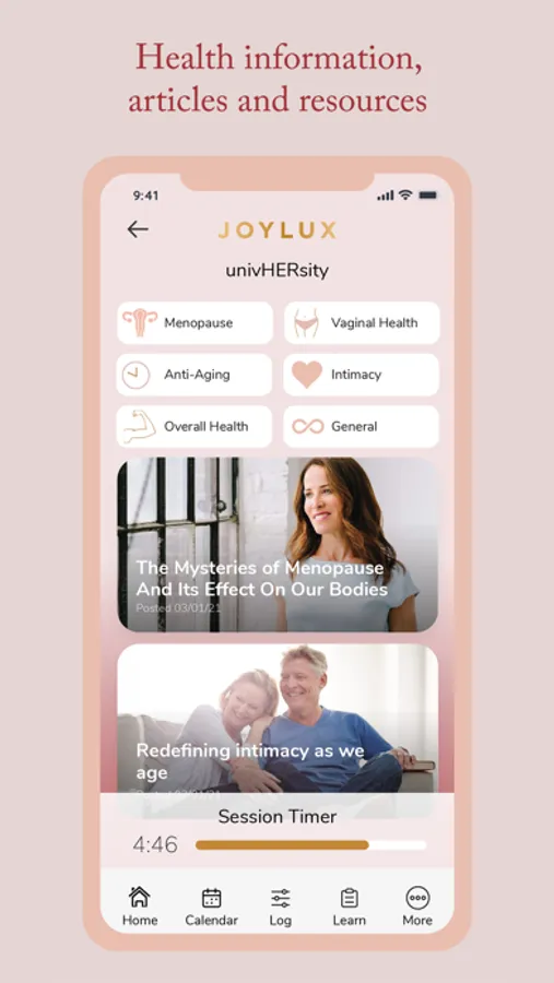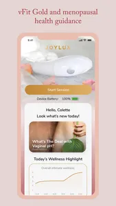 Manage your menopausal health journey with the Joylux Gold app. The companion product, vFit Gold, is backed by 19 groundbreaking patents and endorsed by over 1,000 medical professionals. vFit Gold seamlessly syncs with our app so you can control your device and keep track of your sessions, times, and intimate wellness regimen. Enjoy customized wellness reports to help you visualize your progress. Log over 30 additional health indicators to track menopause symptoms and stages and how they impact your overall health. Get access to Joylux UnivHERsity and learn what your body is going through during this mid-life transition. Our digital tools help you improve your intimate health, quality of life, and overall confidence, so you can navigate all stages of menopause feeling educated and empowered.